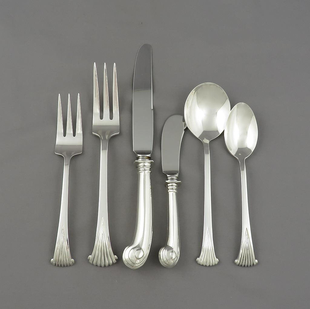 A sterling silver flatware set for 8 by Tuttle Silversmiths in the Onslow pattern, Boston 1982, comprising: