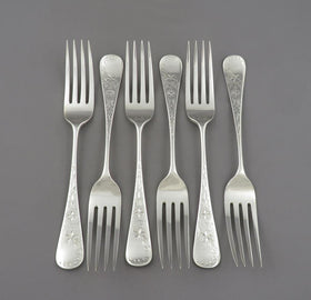 6 Georgian Sterling Silver Fiddle Thread & Shell Dinner Forks