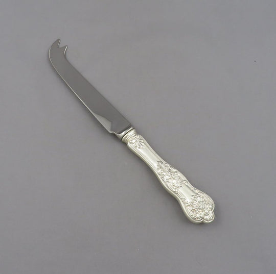 A sterling silver cheese knife in Queens pattern, by Henry Birks and Sons, Montreal c. 1980. 7.9″ (20cm).