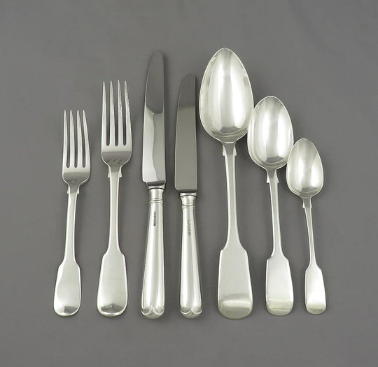An assembled late Georgian and Victorian sterling silver flatware service for 12 by Various makers*, hallmarked London 1822 and later, comprised of: