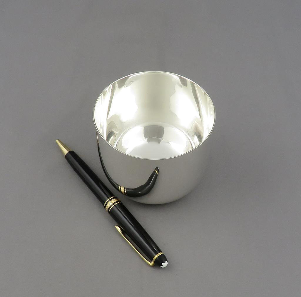 A Victorian sterling silver tumbler cup by Daniel & Charles Houle, hallmarked London 1881. Straight sided with hammered finish, 2.5" (6.3cm) high, 5.5 troy oz (172g).