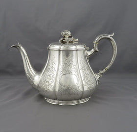 JH Tee Antiques Ltd is pleased to offer a fine selection of antique sterling silver teapots, coffee pots, hot water pots and kettles. Tea pots are typically short and wide to offer better brewing. Silver is a exceptional conductor of heat. If you remember to warm your pot before you brew your tea the pot will stay hot for an exceptionally long time. Nothing makes a better cup of tea than a sterling silver teapot! We carry teapots from the early 18th century period right up to the modern era. Our antique and vintage teapots can be purchased online, click on the Add to Cart icon or visit our shop in Vancouver, Canada. You can click on the image of one of the silver teapots to see more photos and details.