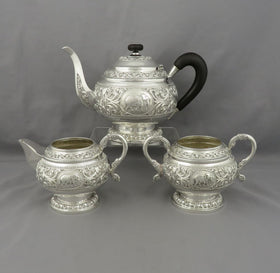 JH Tee Antiques is pleased to offer a fine selection of antique sterling silver tea sets and coffee sets. All of our antique silver tea sets can be purchased online, or from our shop in Vancouver. You can click on the image of one of the silver coffee sets to see more photos and details.