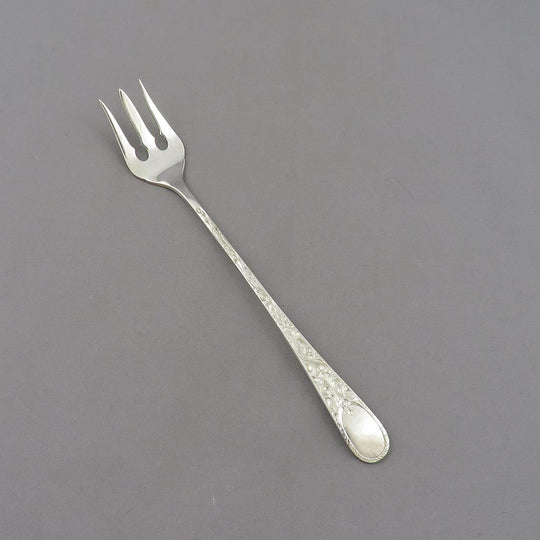 Sterling silver seafood or oyster fork in London Engraved pattern, Henry Birks and Sons, Montreal c. 1965. 5.5" (14cm).