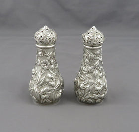 Add some elegance to your table with sterling silver condiments dishes. JH Tee Antiques carries a wide selection of antique silver condiments including silver mustard pots, silver salts & peppers, silver condiment sets, cruets and more. Everything you need for a sparkling setting.