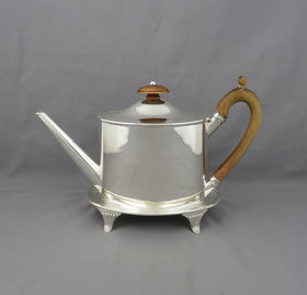 JH Tee Antiques Ltd is pleased to offer a fine selection of antique sterling silver teapots, coffee pots, hot water pots and kettles. Tea pots are typically short and wide to offer better brewing. Silver is a exceptional conductor of heat. If you remember to warm your pot before you brew your tea the pot will stay hot for an exceptionally long time. Nothing makes a better cup of tea than a sterling silver teapot! We carry teapots from the early 18th century period right up to the modern era. Our antique and vintage teapots can be purchased online, click on the Add to Cart icon or visit our shop in Vancouver, Canada. You can click on the image of one of the silver teapots to see more photos and details.