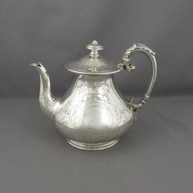 To purchase one of our antique silver tea sets please click on the Add to Cart button, the Email Inquiry button or visit our shop in Vancouver. There are many silver vessels available for the service of tea and coffee. Silver tea pots are typically short and wide to offer better brewing while silver coffee pots are taller and narrower for an elegant appearance. Silver cream jugs and sugar bowls are must-haves but complete antique silver tea services can also include other pieces like hot water pots or kettles, waste bowls, tea caddies and tea trays. Nothing makes a better cup of tea than a sterling silver teapot!